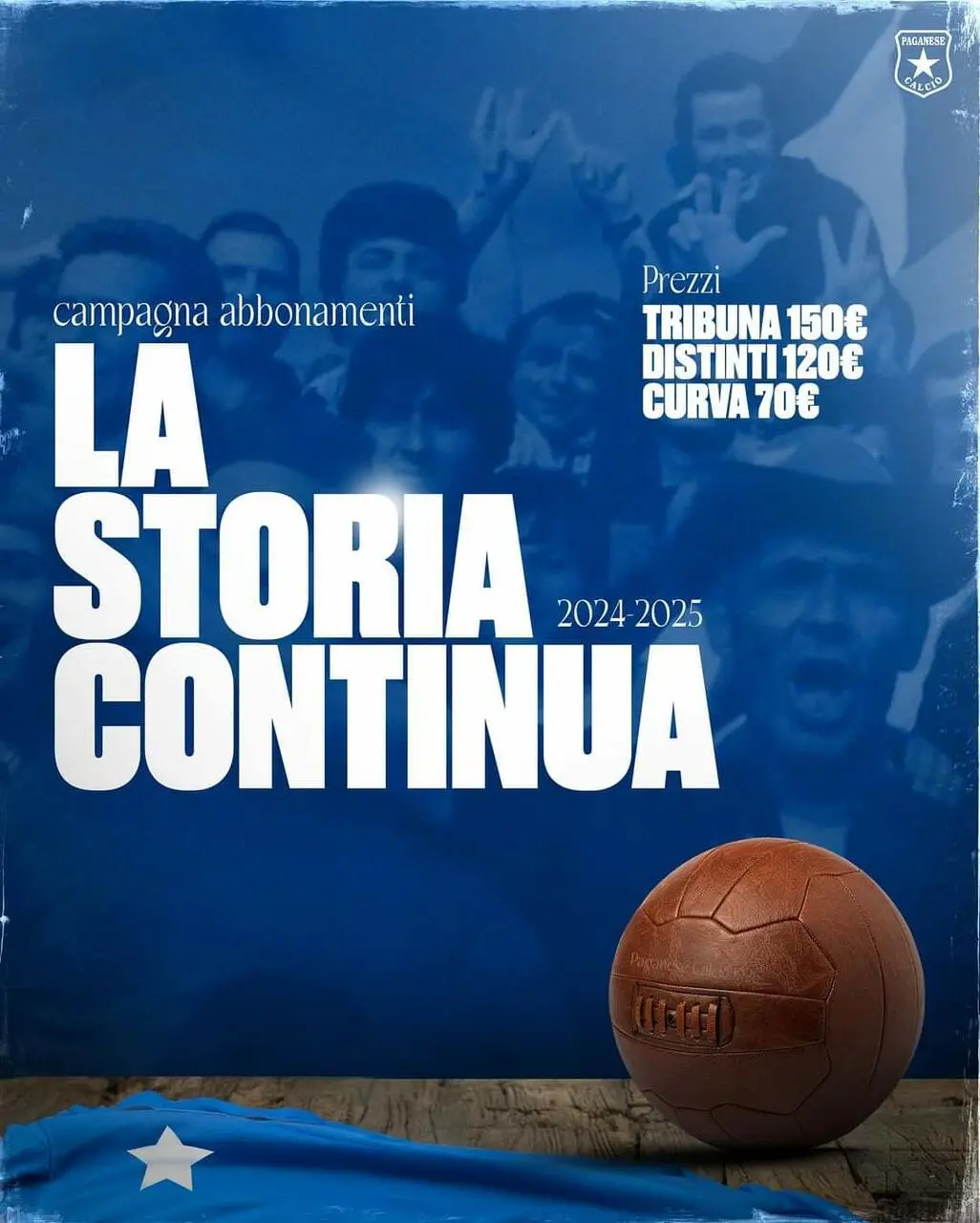 La Paganese Calcio 1926 srl, comunica che da oggi Lunedi 15 Luglio 2024 parte ufficialmente la campagna abbonamenti “La Storia Continua” per la stagione 2024-25.