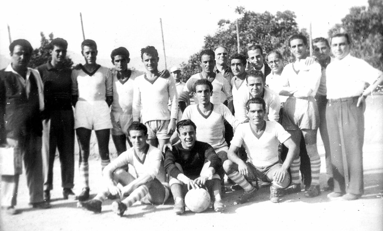 Il primo confronto non avvenne in campionato, bensì nel Girone Finale post campionato di Prima Divisione 1948-49, nella foto, che doveva decretare le finaliste che avrebbero spareggiato per un posto nel Campionato di Promozione. E' il 5 giugno 1949 ad Acerra termina 1-1, reti di De Nicola su rigore per i padroni di casa e pareggio di D'Alessandro per gli azzurri di Tessitore. Le due squadre chiuderanno questo girone entrambe prime con 16 punti. Serve lo spareggio per definire chi sale in promozione: lo si gioca il 24 luglio del 1949 ad Avellino ed è ancora pareggio 2-2 dopo i tempi supplementari. All'epoca non esisteva risolvere tutto con i calci di rigori e così la gara si ripetette il 31 luglio a Marigliano. Vinse l'Acerrana per 3-1 dopo i tempi supplementari con Fusco che realizzò il gol al 107' e Fotticchio chiuse il giochi due minuti dopo. Fu grande l'amarezza a Pagani. Durò però poco visto che la Lega,per la ristrutturazione dei gironi, promosse anche la Paganese, che raggiunse l'Acerrana in Promozione.